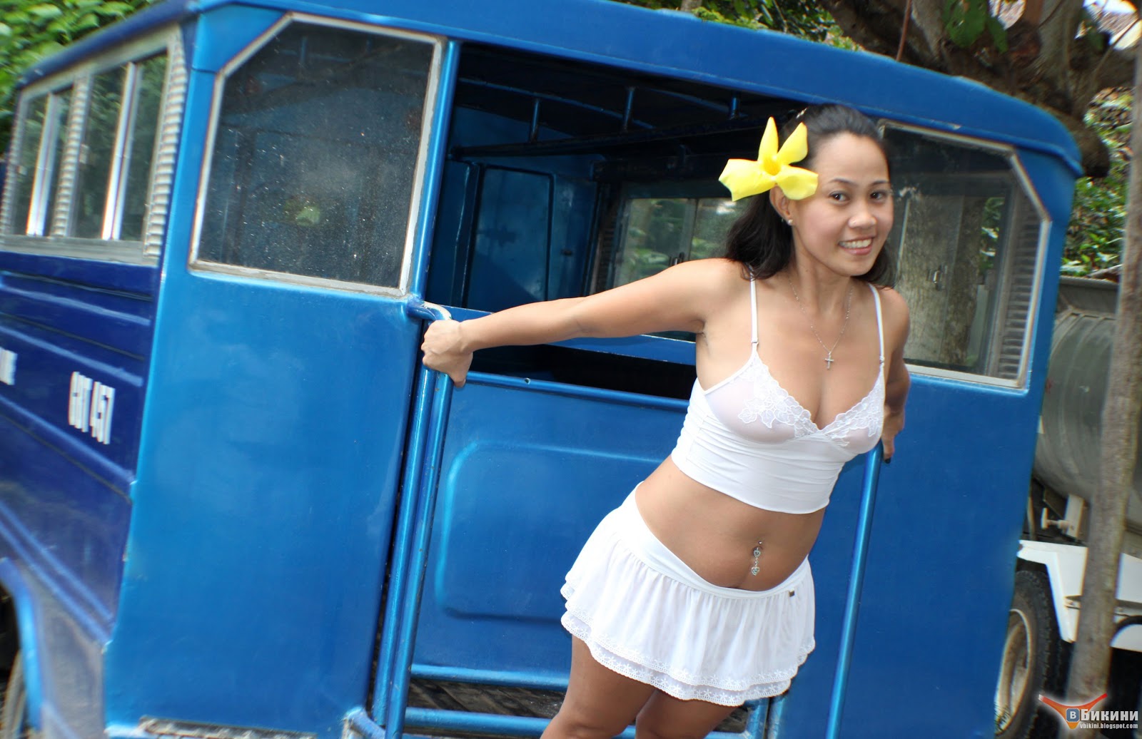 Фото филипинки в белом танкини и в короткой белой юбке |