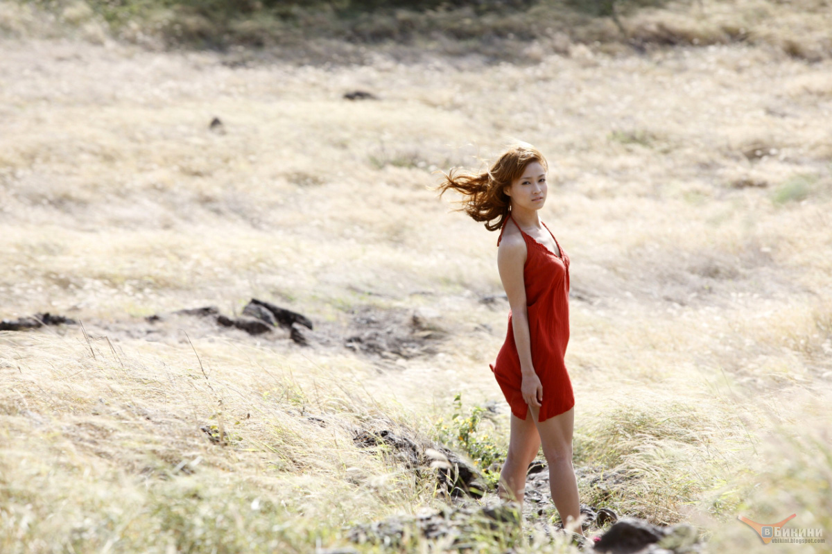 Девушка загорает на пляже в красном бикини (Eri Kamei) |